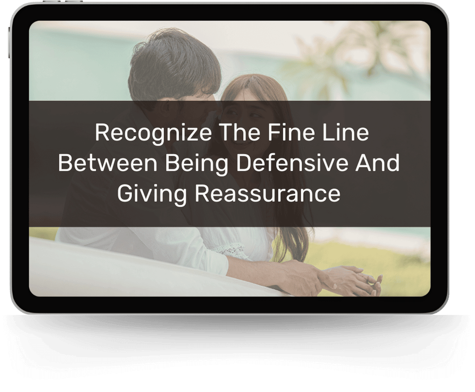 How to recognize the fine line between being defensive and giving reassurance when your partner is worried (Crucial, to avoid creating more damage to the trust between you)